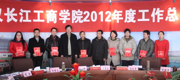 新闻中心讯(记者 万风)1月14日下午,我校2012年度工作总结表彰暨校领导年终述职会议在第一会议室隆重召开。校董事长彭秀春、校长张金隆、党委书记陈伟、党委常务副书记邹继康、副校长陶梅生、万化喜、程虹、党委副书记向太斌、副校长刘腾红、校长助理左宗文、张俊、王程军出席会议,各二级学院院长、副院长、党总支书记,各职能部门副部级以上干部、获奖集体和个人代表参会。党委书记陈伟主持会议。