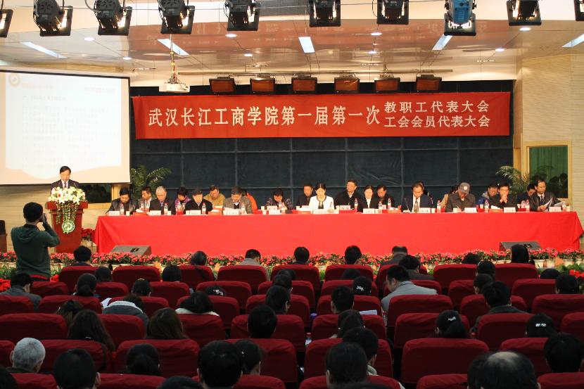 省教育工会副主席卢渝萍致辞。她代表省教育工会向我校“两代会”的胜利召开表示热烈的祝贺。她说,这是武汉长江工商学院转设以来的第一次“两代会”,是学校发展建设史上的一件大事,也是全校教职工政治生活的一件喜事。她希望我校教职工以本届“两代会”为契机,开拓创新,爱岗敬业,早日实现学校的宏伟发展目标。