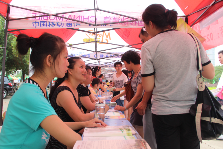 图为考生和家长在我校招生咨询点前询问我校招生信息 摄影:张承立