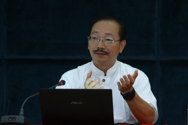图为林子铭教授在做讲座 摄影:林倩