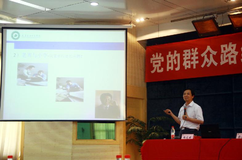 图为张校长在为全体干部讲授“赢在执行力”的培训讲座 摄影:林倩