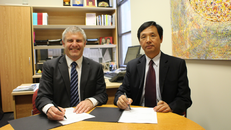张金隆校长与科廷学院校长Andrew Crevald 签署项目协议