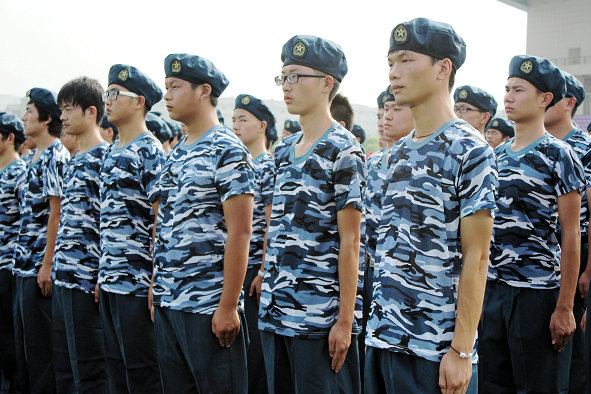 图为新生在军训 摄影:王婷