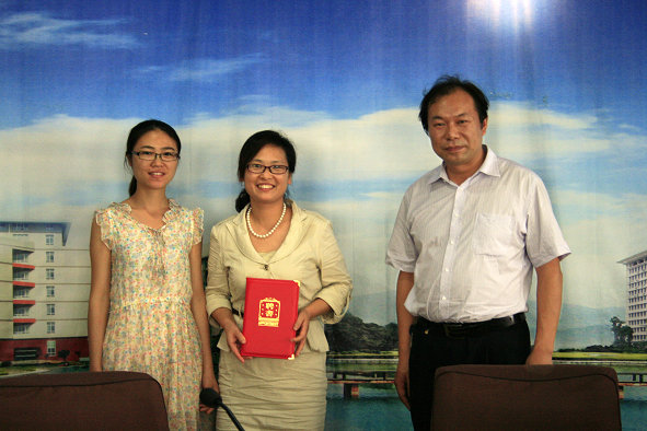 图为教师节陈书记为青年教师颁发聘书 摄影:王婷