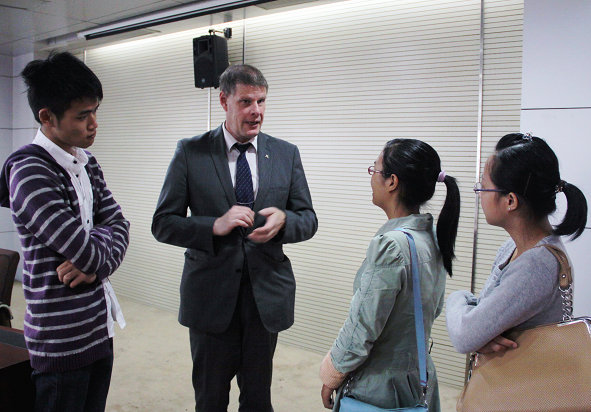 讲座结束后,同学们纷纷就诺基亚、微软、苹果、谷歌的营销、管理等问题踊跃向Reima Suomi教授请教,Reima Suomi都一一给予了耐心细致的解答。