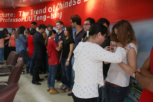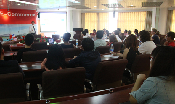 刘腾红教授做了题为《中国电子商务发展趋势》的讲座,他结合美国、英国、日本电子商务发展的现状,提出了中国电子商务发展的八大趋势,包括“全民网购”、“电视电话电脑三网融合”、“移动电子商务广泛应用”等。在讲座的过程中,刘腾红还与法国学生进行了互动交流。