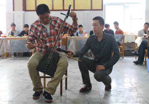 图为蒙古族学生在联欢会上演奏马头琴 摄影:王蕾