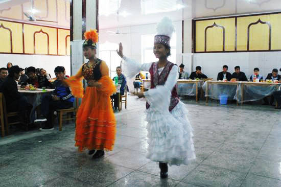 新闻中心讯(记者吴田芳 从梦圆)10月15日下午,我校80多名新疆籍少数民族学生载歌载舞在清真食堂欢度他们的传统佳节——古尔邦节。我校党委书记陈伟,学生工作部部长陈义文,民族教育学院党总支书记张兆学,学生资助管理中心主任海鹏,新疆教育厅选派教师阿布力米提老师等和学生们一起联欢。