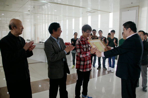 张金隆校长发表讲话,他说,中国的书法是国粹,书法班的同学们皆为中国传统文化的传承者和国粹的弘扬者,希望书法班越办越好。随后,他宣布颁奖仪式正式开始。