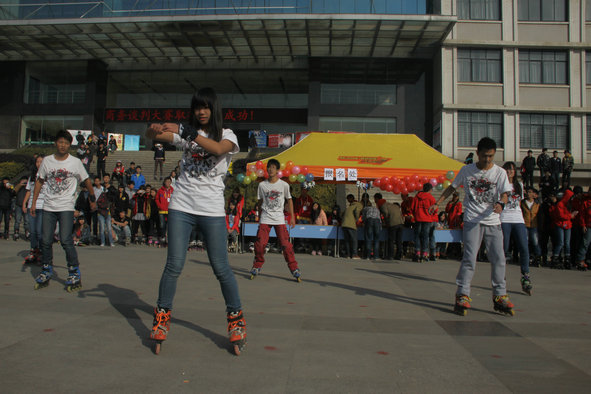 新闻中心讯(记者 陈俊 见习记者 吴田芳)11月30日上午,武汉长江工商学院轮滑协会在该校综合楼门前举办了第四届高校轮滑邀请赛。比赛邀请了武汉大学轮滑社、华中师范大学轮滑社、湖北工业大学轮滑社等30多所高校轮滑社以及武汉WFT明星队、武汉佑铭平花队两个俱乐部,二蒙军团、轮舞极限等轮滑爱好者协会参加此次比赛。