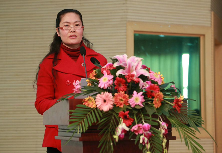 图为校工会副主席苏红作工会工作报告 摄影:林倩