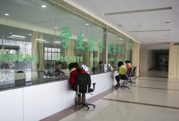 该校学生综合服务中心是由学生工作部去年开始筹办,今年正式向全校学生开放,除了办理学生日常事务外,还为学生提供各种信息咨询服务。中心目前开设了六个窗口,分别是综合咨询处、学生证及户籍管理、学生档案、毕业生事务、学生资助中心、失物登记认领。各窗口都由学工部老师带领学生志愿者轮流值班,办理各项事务,回答学生们的各种问题。中心还将各种事项的办事流程和注意事项制作成宣传册,放置在窗口旁的资料夹中,学生可以自由取阅。后期中心还将联合学校其它部门增加更多的服务项目,更好地服务于学生。