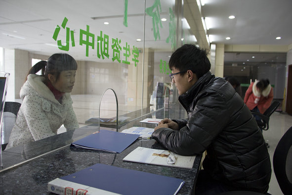 图为服务中心工作人员为来访同学认真解决问题 摄影:李鳌