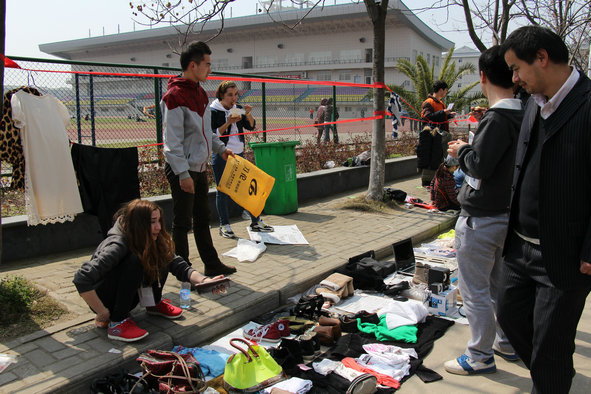 图为我校民族生在跳蚤市场 摄影:林典