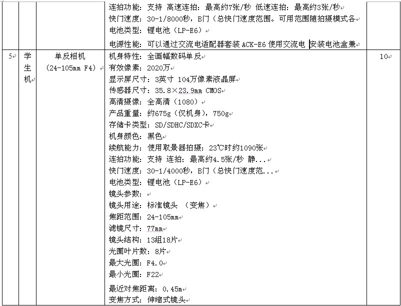 一、招标项目名称:关于实验中心相机及摄像机采购项目。
