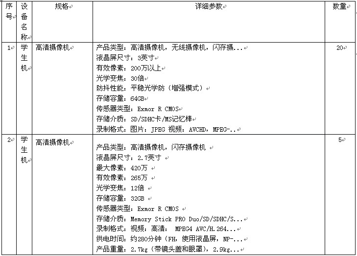 根据我校实际需求,现面向社会邀请具有实力的单位进行我校关于实验中心相机及摄像机采购项目招标,欢迎能按标书要求的厂家前来投标。