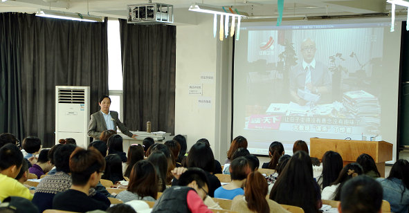交流完毕后,张金隆对学生积极思考给予肯定的同时提出了自己的看法:一、互联网促进了社会的发展,二、社会的发展需要互联网、三、互联网是创新事业。最后,他勉励学生:“互联网是颠覆传统产业的事业,互联网需要有创意的人,同学们要努力成为一个有创意的人”。话音刚落,教室响起一片热烈的掌声。“校长课堂案例丰富,互动性强,不知不觉两节课就上完了,感觉学到了很多知识”,学生向蓉蓉说。