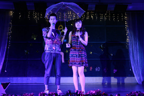“I'm yours,I've been spending way too longs……”吉他伴奏歌曲《I am yours》节奏舒缓、深情;民族歌舞《星月神话》演绎了唯美的神话故事,5位身着蓝白色古装的女子,手拿圆扇,动作优美地跳起了民族舞。“千年之后的你会在哪里,身边有怎样风景……”柔情的曲调仿佛让观众置身于那跨越千年的爱情故事中;在学校有着“高音女王”之称的经外学院大一学生黎雅婧带来的歌曲独唱《存在》,以优美独特的嗓音挑战高难度,赢得了观众们的阵阵掌声。
