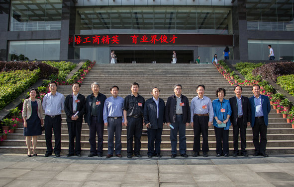 图为武汉长江工商学院董事长彭秀春、校长张金隆、党委书记陈伟与视察团一行合影 摄影:李鳌