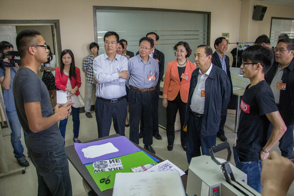 图为视察团一行参观实验教学中心 摄影:李鳌