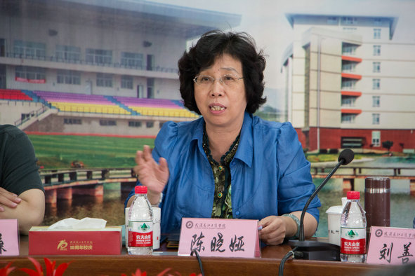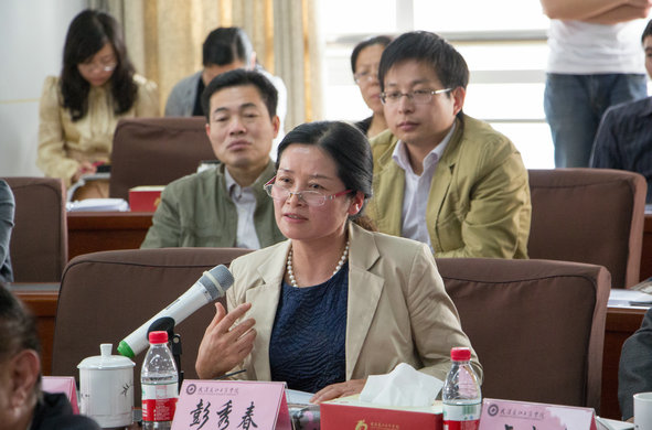 图为武汉长江工商学院董事长彭秀春在调研会上发言 摄影:李鳌