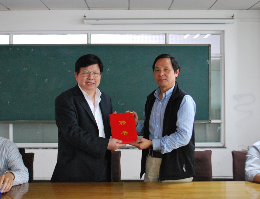 图为张金隆校长向周建亚教授颁发聘书 摄影:黎杜豪