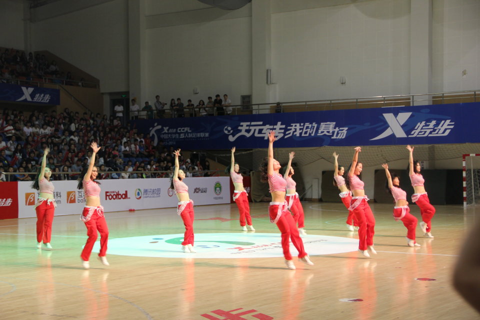据悉,2014特步中国大学生五人制足球赛(CCFL)暨2014特步中国大学生足球啦啦队选拔赛由中国大学生体育协会、中国足球协会共同主办,特步独家冠名,互动百科独家推广。本届“特步”中国大学生足球啦啦队选拔赛分为南、北两个大区进行。队伍采取自选成套,规定成套,团队PK,队长PK、世界杯主题舞蹈五种方式进行PK。