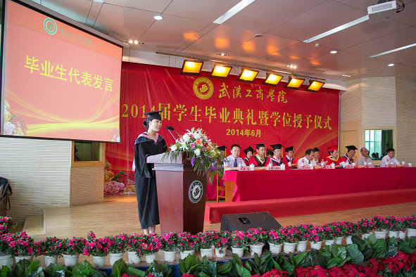 在校生代表、管理学院大三学生丹智草向毕业生们送上了最真挚的祝福,祝愿毕业生们在人生道路上再创辉煌,展现工商学子的能力和风采。