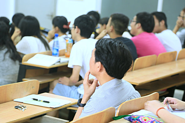在综合楼611教室,青年教师管威正在给2013级会计专业的学生们上《财务管理理论与实务》课程,张校长走进教室后排坐下一边听,一边观察课堂氛围。