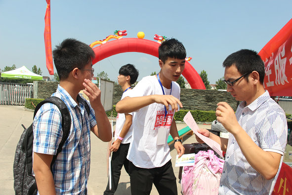 张金隆校长亲自“体验”了新生报到的全过程,从注册登记处、缴费处、领取生活用品处、领取军训服装处到学生寝室,他都走了一遍,每到一个地方他都会和新生和家长们交谈。大一新生颜家乐拿着张校长亲笔签名的录取通知书,激动地说,“我们张校长真可爱。”