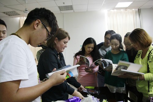 图为Prof.Kris Scholz教授给我校学生介绍自己的摄影作品 摄影:金晶