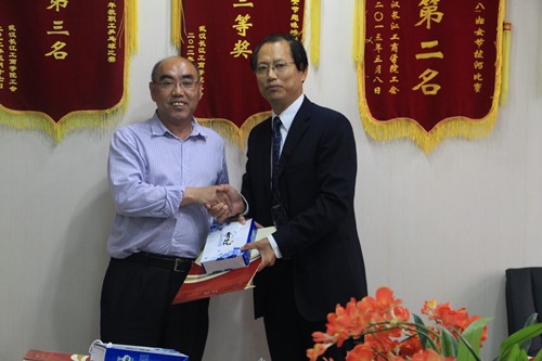 图为副校长刘腾红为科廷大学代表团代表赠送礼物 摄影:刘亚婷