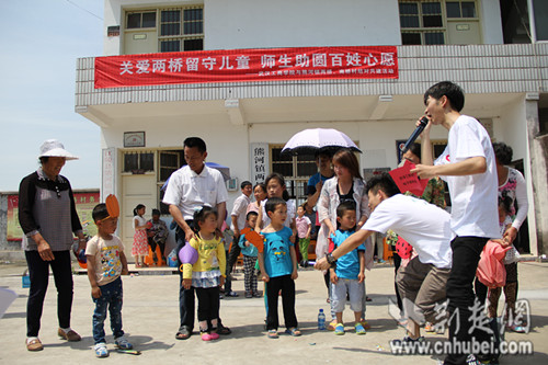 据了解,两桥村的青壮年大多外出打工,村里共有留守儿童40多个。对于远道而来的大学生志愿者,两桥村村长兼书记黄祥华表示欢迎,并感谢必赢优惠y272net的大学生志愿者对留守儿童的无私关爱。