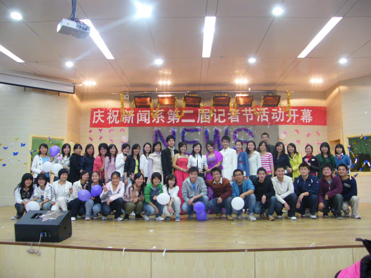 我永远记得06年大家一起创办记者节,记得我们在体育馆外搭草台班子站着看演出的夜晚,记得后来每年我们固定在体育馆402举行记者节庆典,每年都有不少毕业生发短信发微薄关注晚会, 记得第七届的时候,一个同学写道“七届晚会,笔墨春秋由我抒写旧涟漪;十年传设,如歌岁月任你掀开新波澜”,在这个平台上,大家精心打造与自己专业相关的节目,师生同台演出促进了感情,无论是简陋还是繁华,无论是晚会庆典还是后来的金话筒比赛,看着这个活动一步步走向成熟,成为我们系每年的庆典活动之一,心理永远觉得温暖。 这个活动也为我后来在管理学院创办“吃苦.宽容.诚信”主题教育活动、为现在在环生学生打造环保“益”起来积累了经验,无论作为辅导员、分团委书记、支部书记,还是党总支书记,和学生一起打造精品活动都是一件非常有意义的事情。