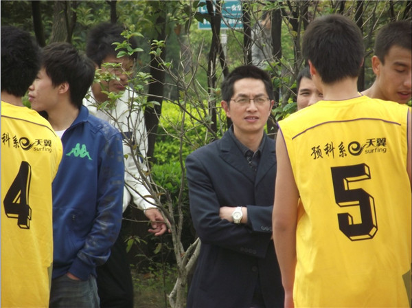 张兆学老师与预科篮球队学生交谈