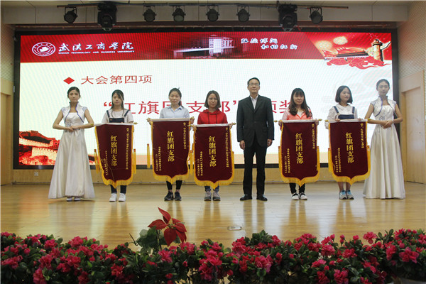 大会在庄严的国歌中拉开了序幕。随后,陈义文部长宣读了《关于表彰2016-2017学年“青年标兵”、“红旗团支部”、“先进团支部”、“模范团干”、“优秀团员”以及“七彩”文化艺术节子活动获奖的决定》,授予胡笑沙等五名同学“青年标兵”荣誉称号,信息工程学院2014级计科实验班等五个团支部“红旗团支部”荣誉称号,管理学院2014级会计本10班等4个团支部“红旗团支部”荣誉称号,任豫媛等76名同学校级“模范团干”荣誉称号,罗娇娇等262名同学院级“模范团干”荣誉称号,张兴宇等675名同学校级“优秀团员”荣誉称号,周琼等725名同学院级“优秀团员”荣誉称号,并且对七彩文化艺术节子活动中获得冠亚季军的学院和个人进行了表彰。陈伟书记、孙松发副书记、桂裕清副校长、王曼部长等领导分别为获奖学院和个人颁发荣誉证书和奖状,并合影留念。