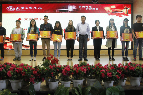 孙松发副书记讲话,他对受表彰的先进集体和个人表示祝贺,对青年学生表示节日问候,同时也对学生们提出了三点希望:一是确立目标,并一步一个脚印的走向目标;二是学习是青年学生的第一要务,要像海绵吸水一样汲取知识;三是秉承五四精神,争做新时代的有用人才,广大青年人人都是一块玉,要时常用真善美来雕琢自己,不断培养高洁的操行和纯朴的情感,努力使自己成为高尚的人。