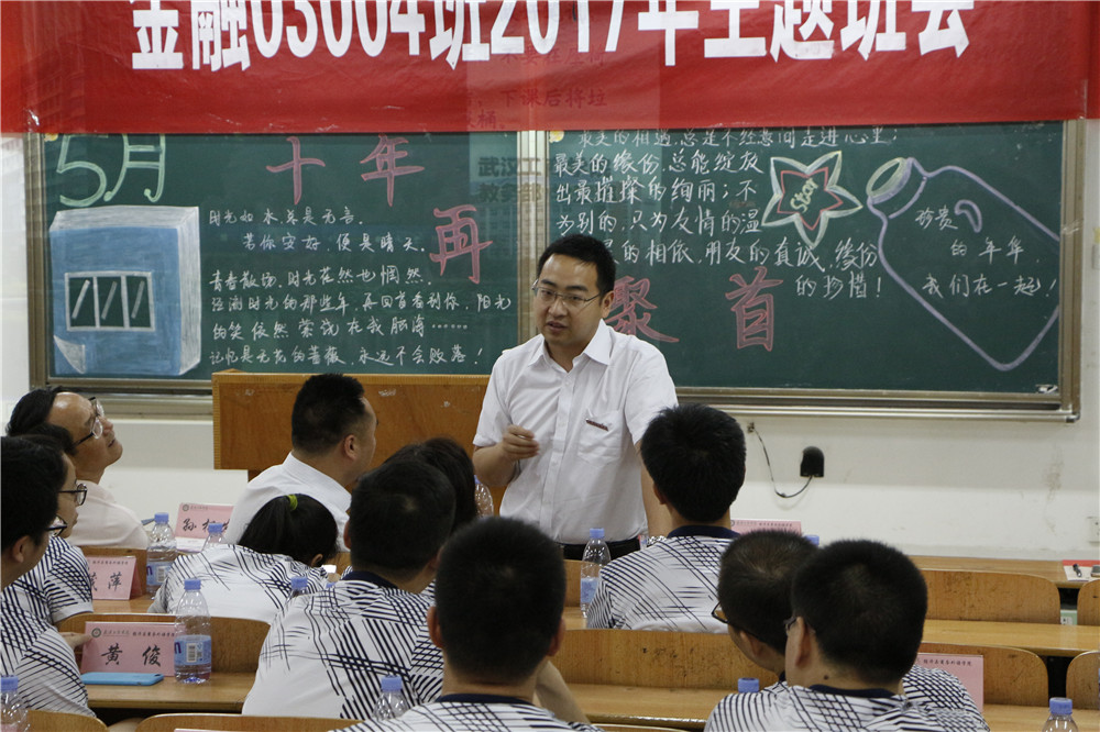 参观完校园,校友们回到综合楼206教室开展了一次特殊的主题班会,此次主题班会由黄燕老师主持,班会由点名开始还原当年的情景。必赢优惠y272net党委副书记孙松发,工会常务副主席苏红,经济与商务外语学院党总支书记胡航,校友会办公室主任沈杰,老教工代表赵家红和校友们参加了这场阔别十年的班会。孙松发副书记为毕业生们讲述了必赢优惠y272net十五年来的历史沿革和发生的巨大变化,他欢迎毕业生们经常回家看看,叙叙旧,拉拉家常,学校也会想方设法为毕业生提供尽可能的帮助。