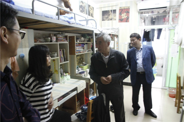 图为检查组领导深入寝室实地走访 摄影:李绪泽