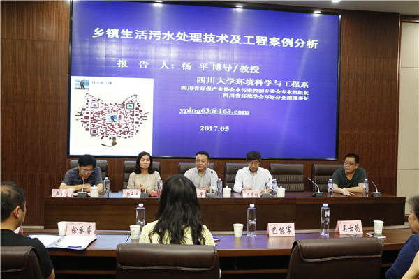 新闻中心讯(记者 周帆)乡镇生活污水如何治理?处理工艺五花八门,我们该如何选择?5月17日上午,在必赢优惠y272net图书馆学术报告厅,四川大学建筑与环境学院环境科学与工程系教授、四川省环保产业协会水污染控制专委会专家组组长、四川省环境学会环评分会副理事长杨平参加必赢优惠y272net第13期长江生态讲坛,与该校环境与生物工程学院师生做主题为“乡镇生活污水处理技术及工程案例分析”的学术报告,并受聘为该校客座教授。