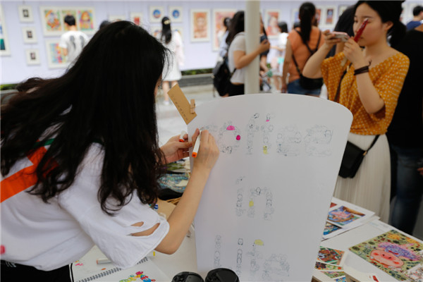 记者看到,很多毕业作品不仅设计美观,而且可以拿来就用,除了常见的T恤衫、手绘鞋、手机壳、丝巾等衍生品外,还有一些更加精巧、实用的作品。