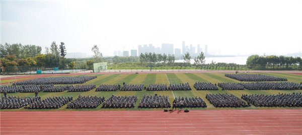 图为开学典礼暨军训动员大会主席台 小璐摄