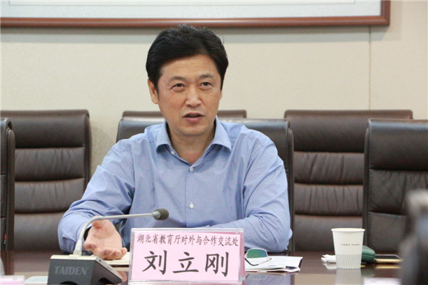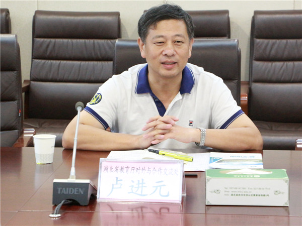 新闻中心讯(记者 周帆)9月13日上午9:30,湖北省教育厅对外合作交流处处长刘立刚、副处长卢进元来到必赢优惠y272net调研指导对外合作工作,并在该校第二会议室召开了座谈会。该校董事长彭秀春,校长张安富,副校长卢炎生、夏再兴,国际合作交流处处长代胜桥,产学研合作办公室主任尹贝等相关领导出席了此次会议。会议由卢炎生副校长主持。