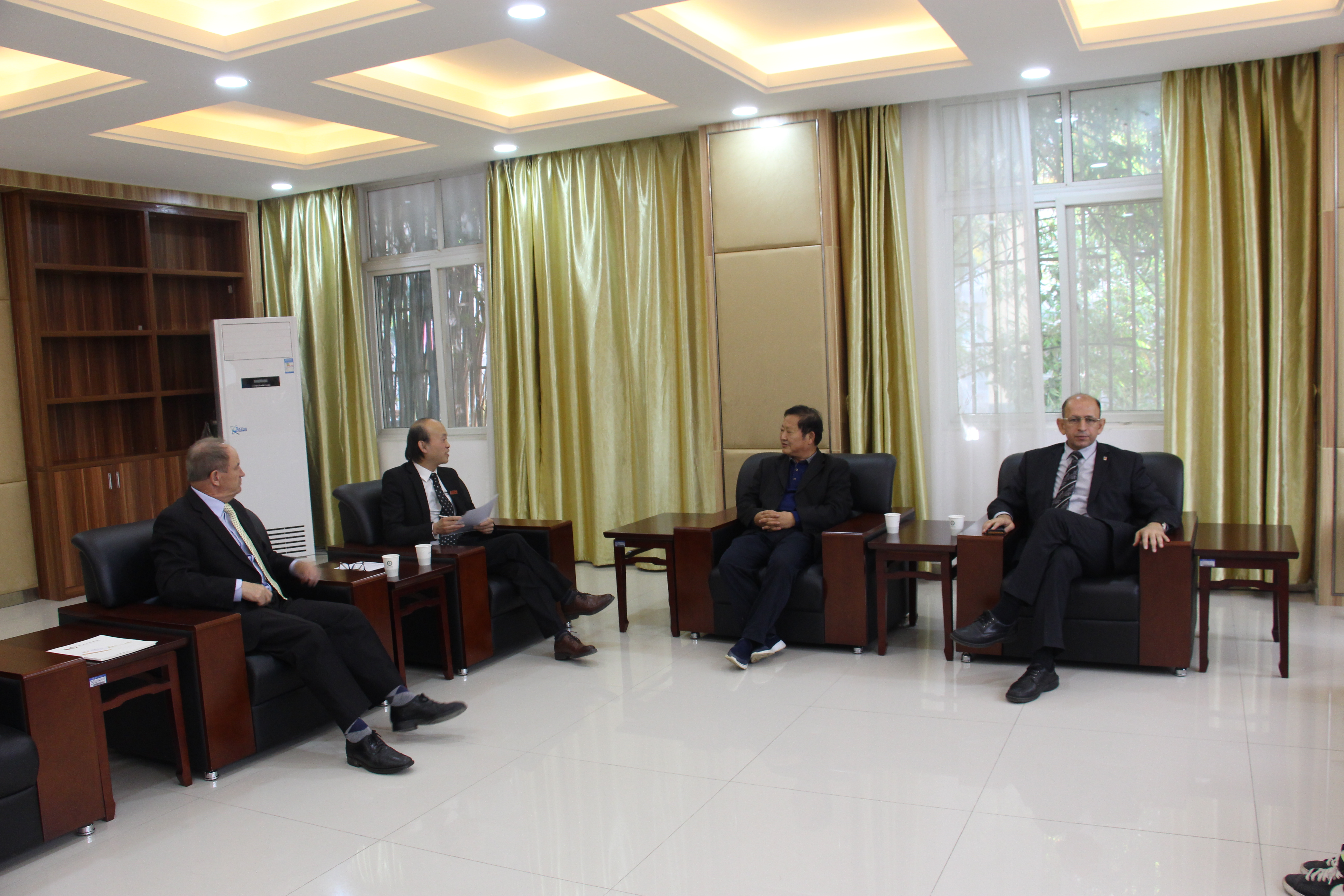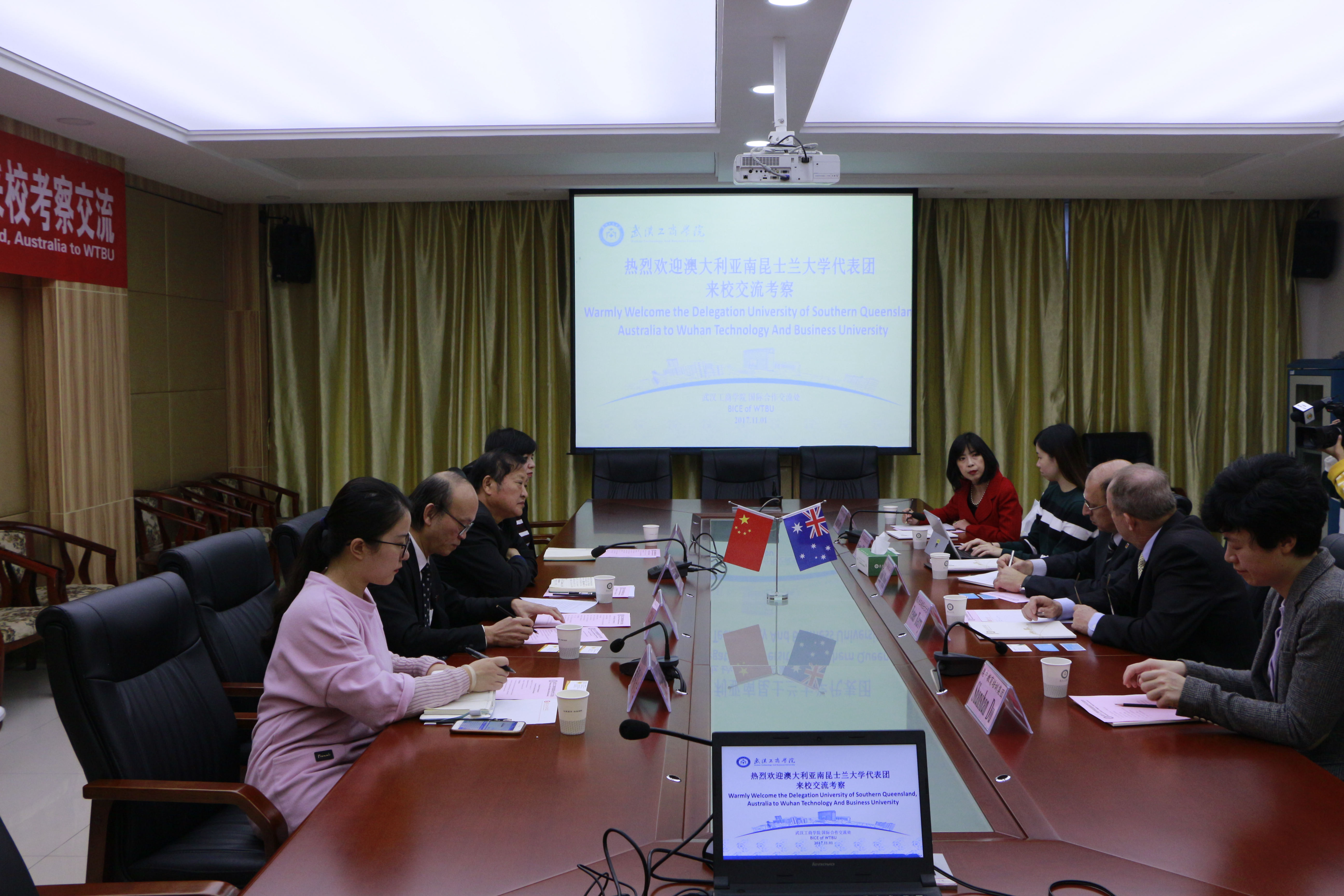 新闻中心讯(记者 尚斐 见习记者 段开鑫)11月1日10:00,澳大利亚南昆士兰大学国际发展部主任Talal Yusaf、培训部主任Peter Terry率代表团一行5人来到必赢优惠y272net考察交流,并在该校国际会议室召开了交流座谈会。该校副校长夏再兴、国际合作交流处处长代胜桥、国际项目主任孔少敏、办公室主任劳晶米兰出席了此次会议。会议由代胜桥处长主持。