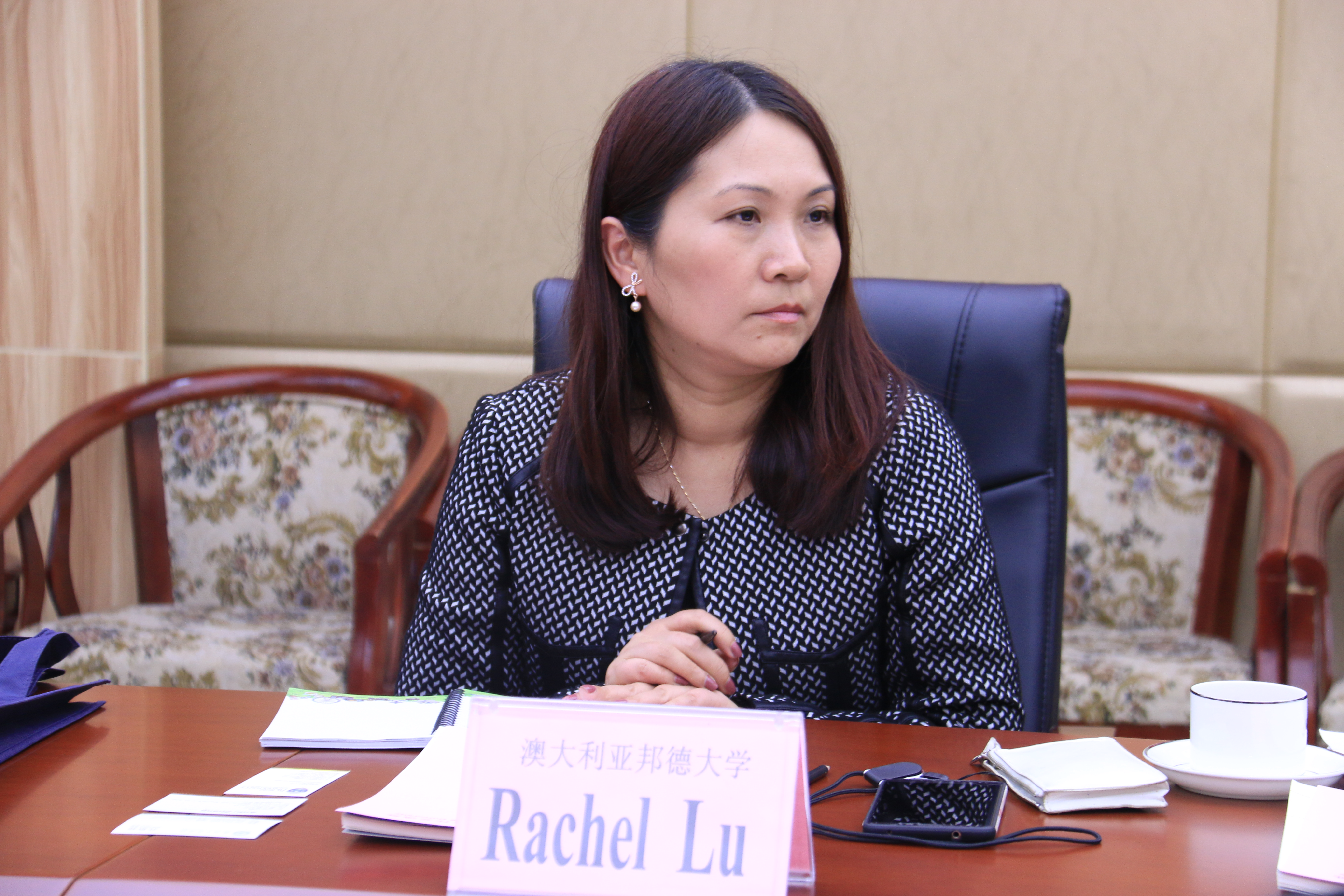 10月31日上午10:00,澳大利亚邦德大学国际部经理Rachel Lu继续与该校展开座谈交流,学校副校长夏再兴、国际合作交流处处长代胜桥、环境与生物工程副院长徐承睿、管理学院常务副院长李明、健康管理系系主任余姗、国际合作交流处国际项目部主任孔少敏、国际合作交流处办公室主任劳晶米兰等参加了会议。