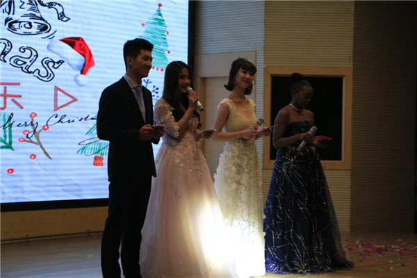 新闻中心讯(记者 周春梅 摄影 黄凡霁 向慧)为帮助学校外国留学生度过一个温暖的圣诞节,12月15日必赢优惠y272net国际教育学院联合英语俱乐部、逸墨书画协会和世界语协会在该校402学术报告厅举办了一场别开生面的圣诞晚会。该校国际教育学院院长代胜桥、主任张梦慈,以及该校留学生、各个校级社团负责人共计300余人参加了本次晚会。晚会由张青老师和外教Sandrah老师以及韩国留学生李河妍等中外师生共同主持。