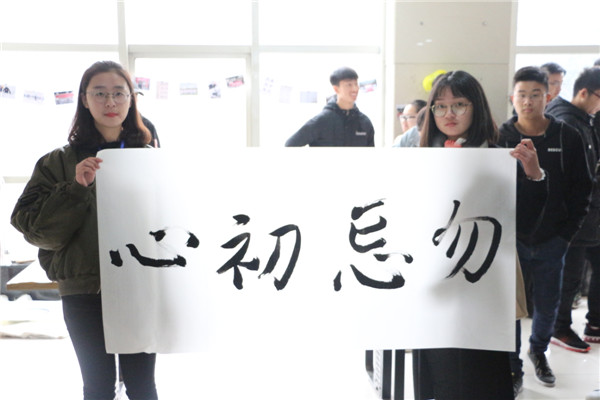 学生现场书写勿忘初心四字 摄影方涵