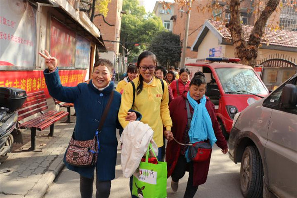 志愿者和老人们手拉手去看电影 摄影曲光浩