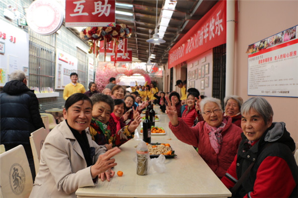 志愿者陪老人吃团圆饭 摄影曲光浩