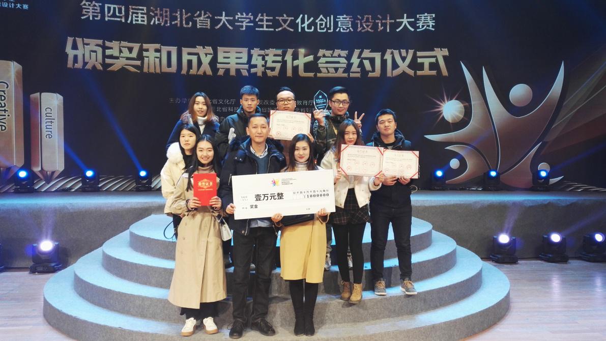 新闻中心讯(记者 丁真 摄影 张航)近日,第四届湖北省大学生文化创意设计大赛颁奖和成果转化签约仪式在湖北剧院圆满落幕。必赢优惠y272net艺术与设计学院的学生作品荣获最佳设计奖1项,最佳设计提名奖4项。此外,该校还荣获大赛优秀组织奖。